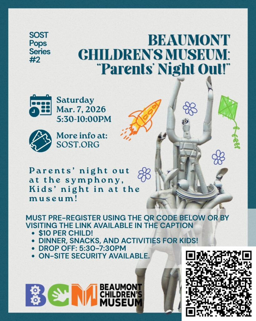 The Beaumont Children’s Museum is offering a special “Symphony of SETX Parents’ Night Out!”