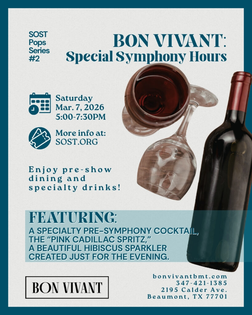 Join us at Bon Vivant at 2195 Calder Ave., Beaumont, TX 77701